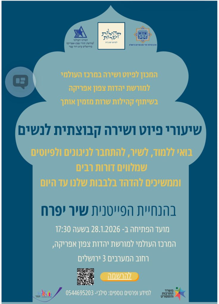 בואו ללמוד, לשיר ולהתחבר לניגונים ולפיוטים שמלווים דורות רבים וממשיכים להדהד בלבבות עד היום.